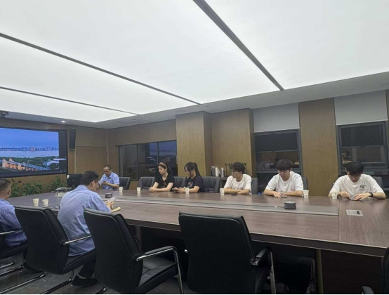 随后,小组与南京钢铁集团副董事长张文忠先生展开座谈交流,重点围绕企业人才需求、岗位招聘标准、校企合作就业等议题深入探讨。实践小组组长陆柏嫣同学介绍了团队成员的专业构成、职业规划方向,表达了大家希望通过此次探企寻岗,了解行业就业动态、对接企业岗位需求的迫切愿望。张文忠先生结合南钢绿色转型战略,详细解读了企业当前的人才招聘重点——重点吸纳环保工程、环境科学、大数据分析、新能源等相关专业人才,同时介绍了企业的岗前培训、晋升通道、薪酬福利等人才保障政策。针对成员们关心的“环保类岗位的技能要求”“应届生就业竞争力提升方向”等问题,张文忠先生逐一解答,他表示,南钢十分重视青年人才培养,希望与高校携手,为学子提供实习、就业平台,实现人才成长与企业发展的双向赋能。交流中,成员管烨同学结合自身专业,就“数字化环保岗位的演进趋势”“企业对应届生的实践能力要求”与张文忠先生深入探讨,进一步明确了自身的学习和职业提升方向。